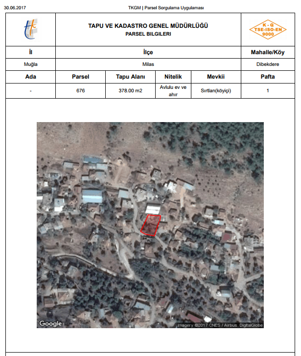 • Muğla Milas Kazıklı Mahallesinde Satılık 144 m2 Kagirev ve Avsusu