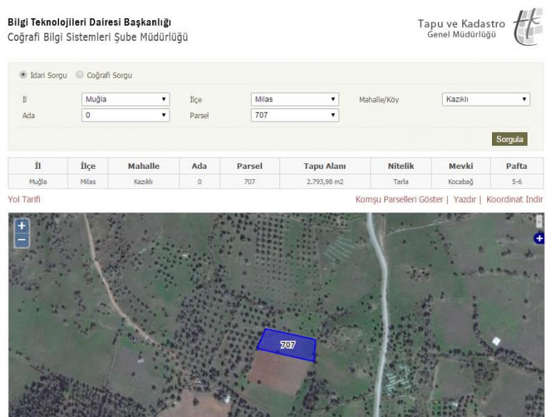 • Muğla Milas Kazıklı Mahallesinde Satılık 2793 m2 Tarla